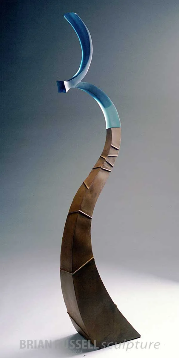 Bounding70x18x10"2003Gaffer 45% Lead Crystal and steelLost wax glass casting, folded and fabricated steel with rust patinaUnique workThis item is on display at Brian Russell Studio