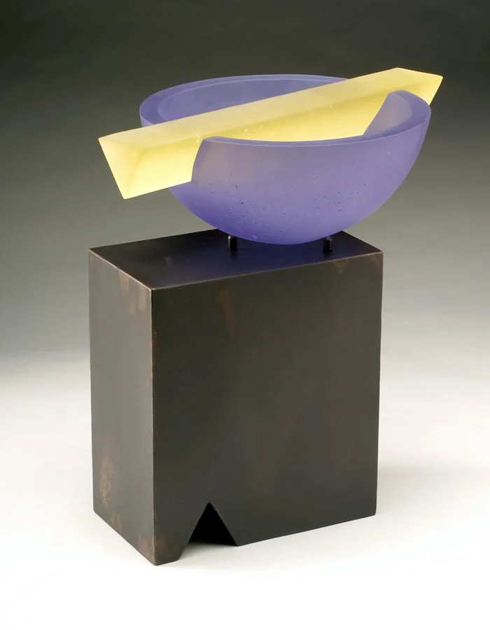 Equilateral18x14x13"October 2004Gaffer 45% Lead Crystal and silicon bronzeLost wax glass casting, formed and welded bronzeUnique workThis item is on display at Brian Russell Studio