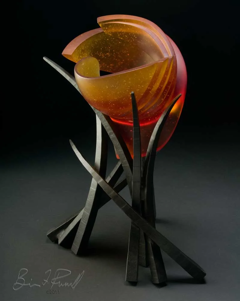 Heart on Fire21x16x12" (53x41x30cm)2011Gaffer 45% Lead Crystal and A36 steelLost wax glass casting, forged and welded steelUnique work